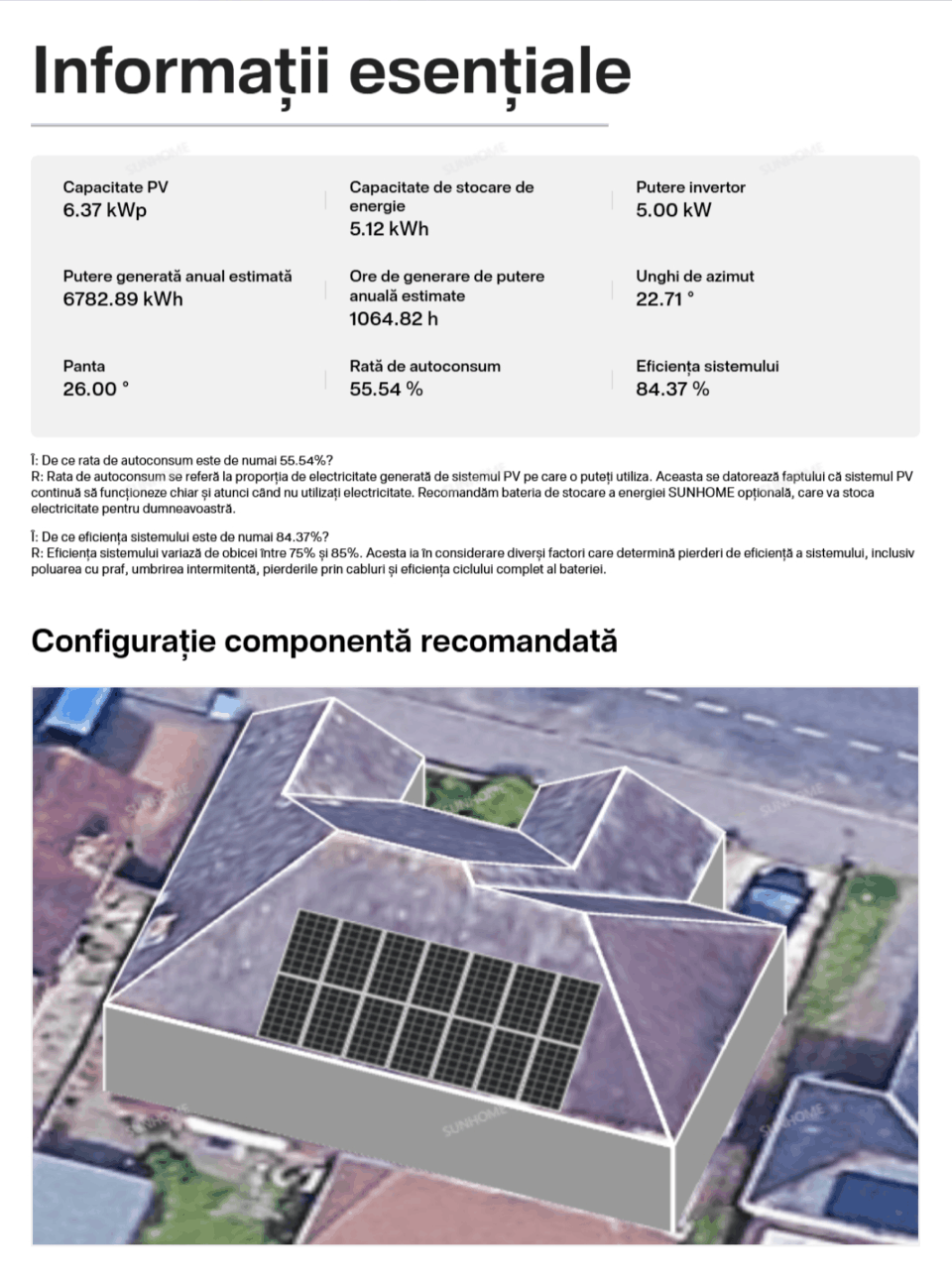 - Sunt foarte mulțumit de planul conceput de Sunhome. Au optimizat amplasarea panourilor fotovoltaice în funcție de orientarea și lumina soarelui pe acoperișul meu, maximizând eficiența și economisind mulți bani la energie.